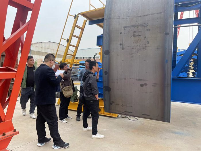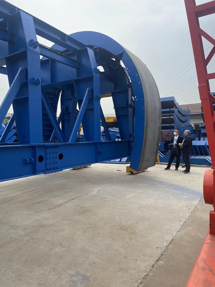 2023年4月13日,中鐵六局集團有限公司沈陽(yáng)地鐵一號線(xiàn)1標項目經(jīng)理部檢查驗收專(zhuān)家組蒞臨我廠(chǎng),對訂購我廠(chǎng)生產(chǎn)的二襯臺車(chē)進(jìn)行檢查測量驗收。在為期一天的驗收工作中,通過(guò)聽(tīng)取現場(chǎng)匯報,實(shí)地測量,調試、繪圖3D模擬,對我廠(chǎng)的二襯臺車(chē)進(jìn)行了細致的檢查驗收。